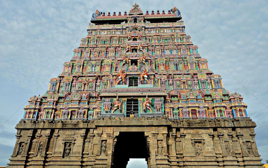 Wyrastające w krajobrazie zielonych pól ryżowych wysokie wieże świątynne – gopury przywodzą na myśl przygotowujące się do startu statki kosmiczne. Niektóre osiągają wysokość dziewięciopiętrowego budynku, jak te w Maduraju. Niektóre, stanowią wejścia do największych kompleksów świątynnych, jak te w Srirangam, kompleksie zajmującym ponad 156 akrów ziemi.
