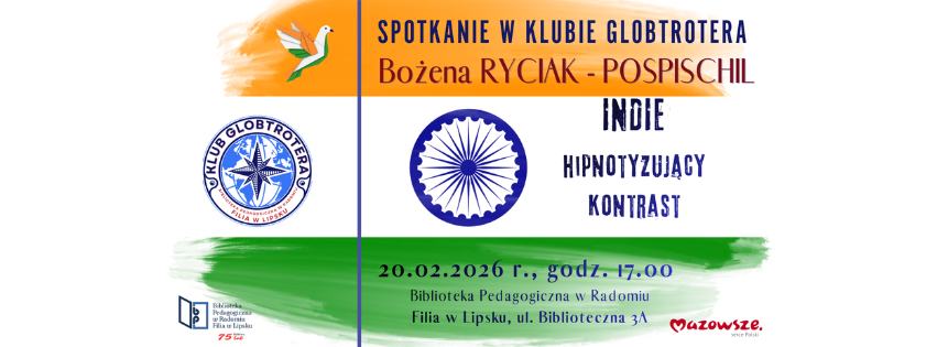 ℹ️ Wykład o Indiach z Bożeną Ryciak-Pospischil. Wydarzenie odbywa się w kameralnej atmosferze biblioteki.