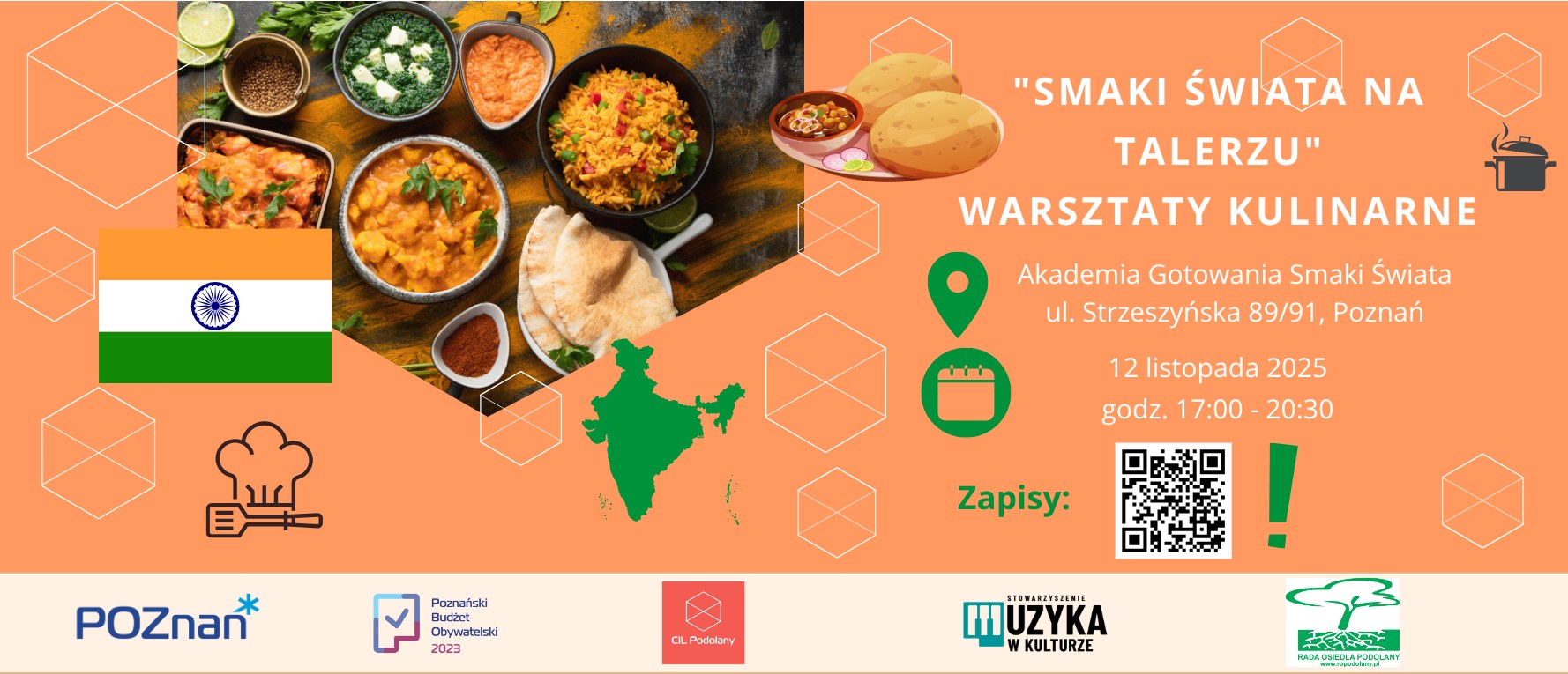 Rada Osiedla Podolany wraz z Poznańskim Budżetem Obywatelskim zapraszają na niezwykłe warsztaty kulinarne, podczas których przeniesiemy się wprost do serca Indii ✨.