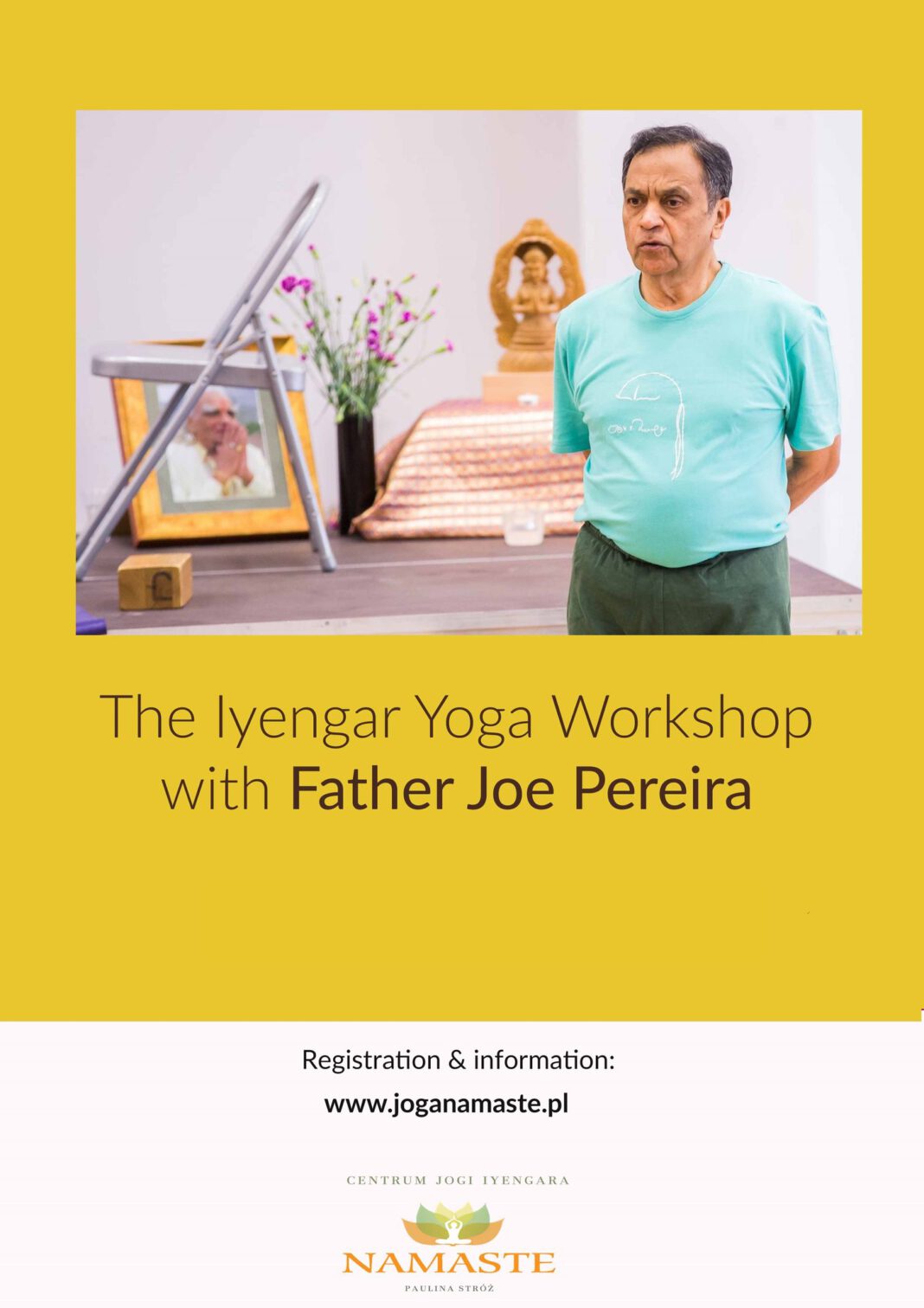 Na co dzień – ksiądz Joe, ur.1942, nauczyciel jogi Iyengara z Indii (Bombaj) w stopniu senior, ukończył studia teologii, psychologii, filozofii w Indiach oraz studia terapeutyczne w USA. Jest założycielem i dyrektorem Kripa Foundation (kripa-łaska) i konsultantem Archidiecezji Bombaju d.s. resocjalizacji osób uzależnionych. W 2009 roku rząd Indii przyznał mu Padma Shri Award, najwyższe odznaczenie za zasługi dla narodu hinduskiego. Od 1968 r. praktykuje jogę pod okiem Gurujiego B.K.S.Iyengara, której elementy stanowią integralną część programu Kripa. Na prośbę Matki Teresy prowadził w Kalkucie rekolekcje dla sióstr z jej zgromadzenia i z jej inspiracji podjął w ramach Kripa Foundation służbę na rzecz osób uzależnionych. Poniżej znajdziecie linki do artykułów opublikowanych przez nas na portalu bosonamacie.pl: Joga a religia – czy joga jest religią? Czy chrześcijanin może praktykować jogę? Ks. Pereira – katolicki ksiądz, który uczy jogi. Ojciec Joe od wielu lat naucza również Medytacji Chrześcijańskiej i jest koordynatorem krajowym Światowej Wspólnoty Medytacji Chrześcijańskiej (World Community for Christian Meditation) dla Indii. W 2010 poprowadził w Katowicach Meditatio 2010. Kierując się zasadą, że „Łaska realizuje się w ciele” w szczególny sposób łączy on chrześcijańską wiarę z hinduską mądrością uwzględniania roli ciała na drodze duchowego wzrostu.
